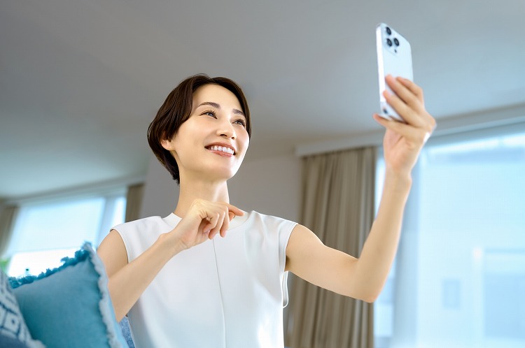 例えば、スマホを少し上の位置に構えて撮影すると、目が大きく、顔がスリムに見えます。